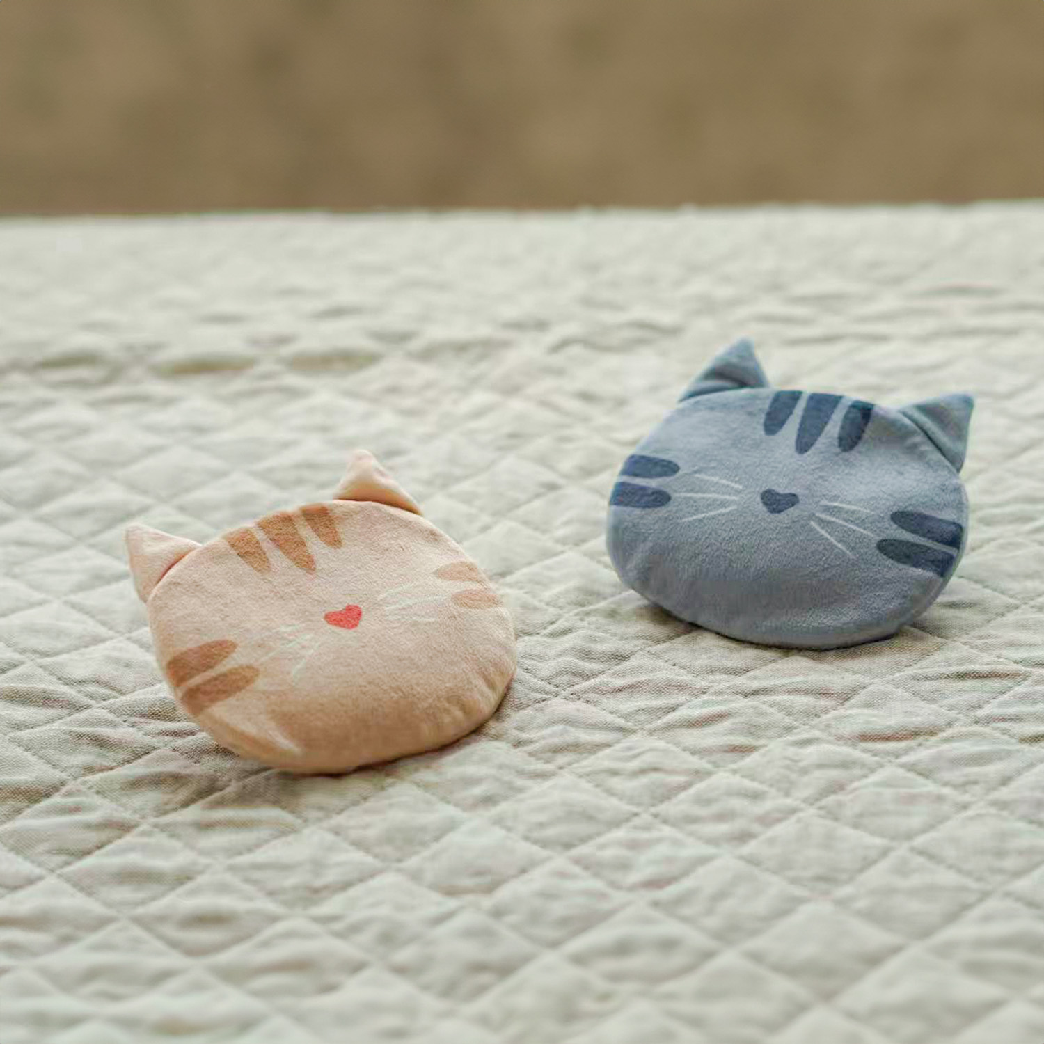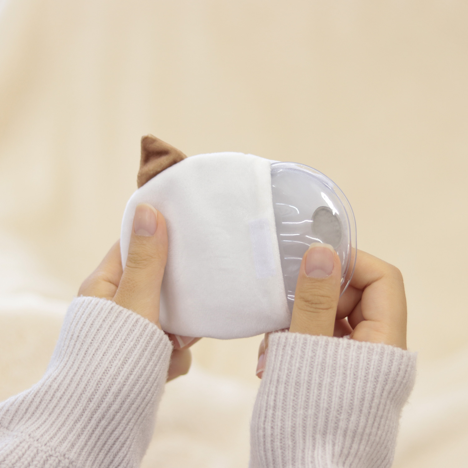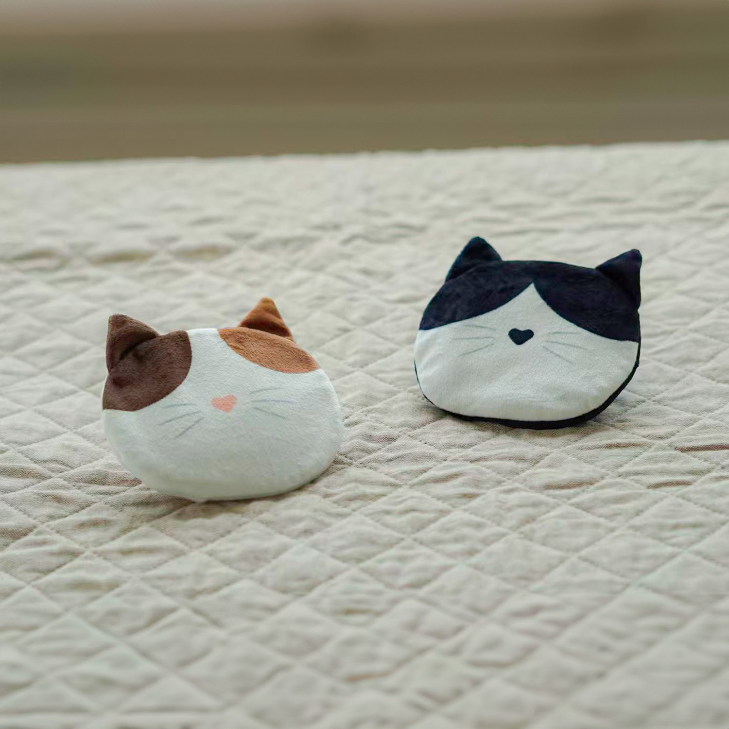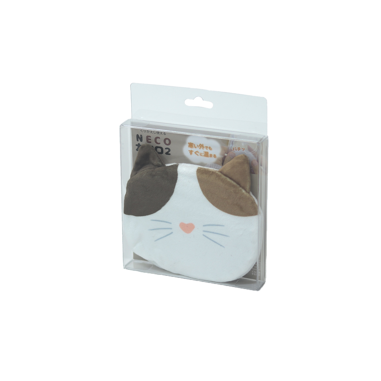 可愛い猫の顔に手も心も温めるカイロ。繰り返し使えるカイロとカバーのセットです。