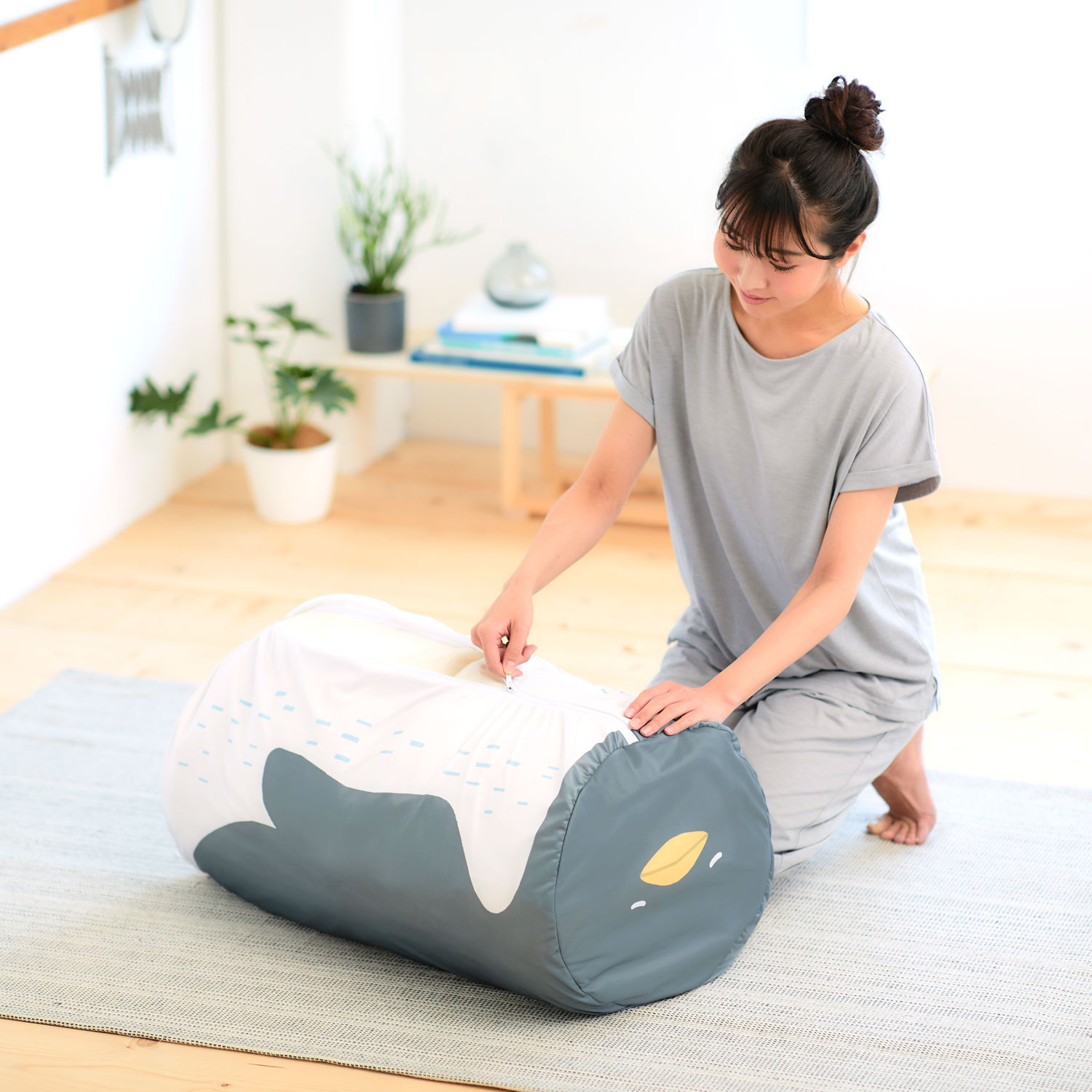 お布団を入れて、ベッドやソファにごろんと転がして、クッションや抱き枕に早変わり!な万能クッションです。