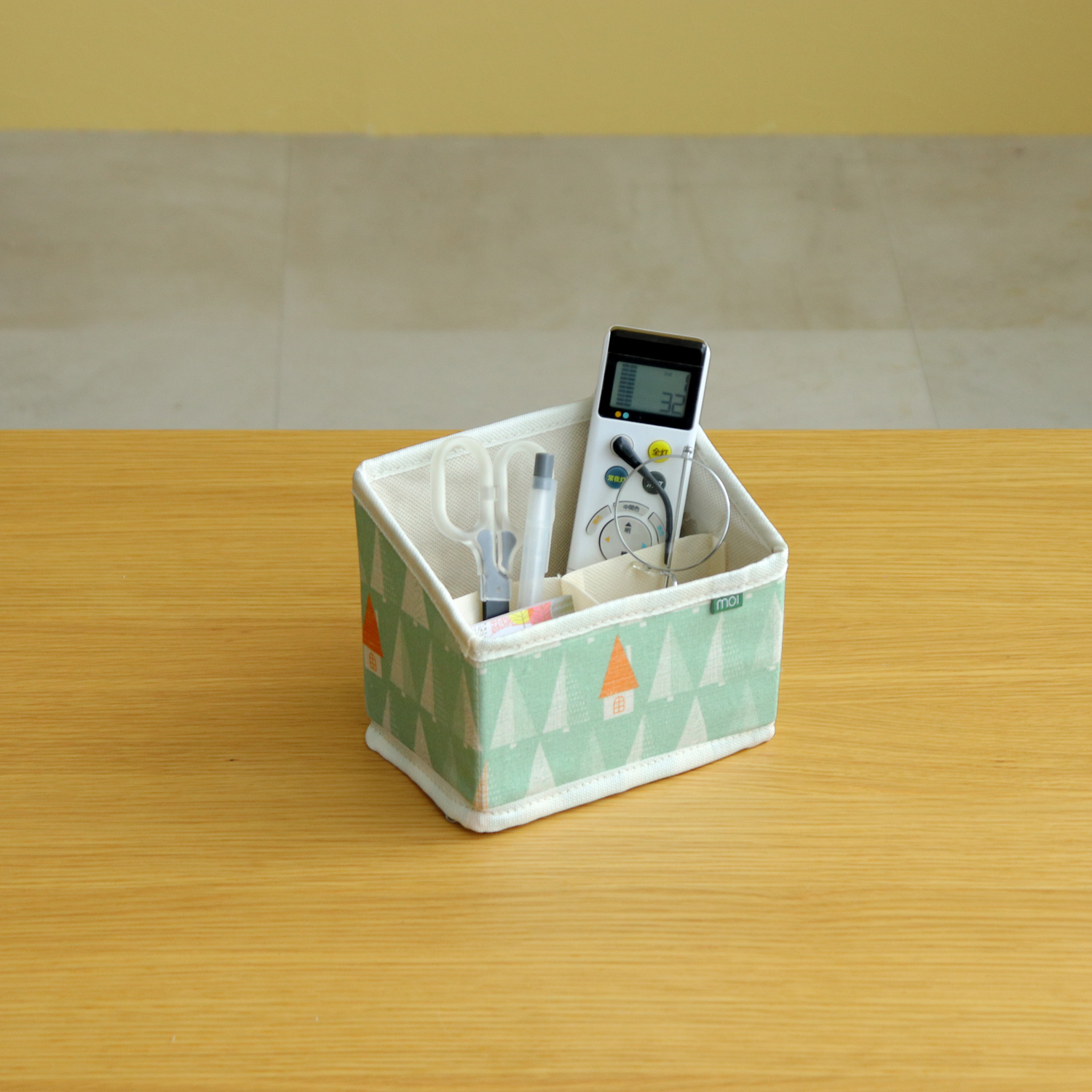 机の上のリモコンや小物をまとめてスッキリ収納できます。