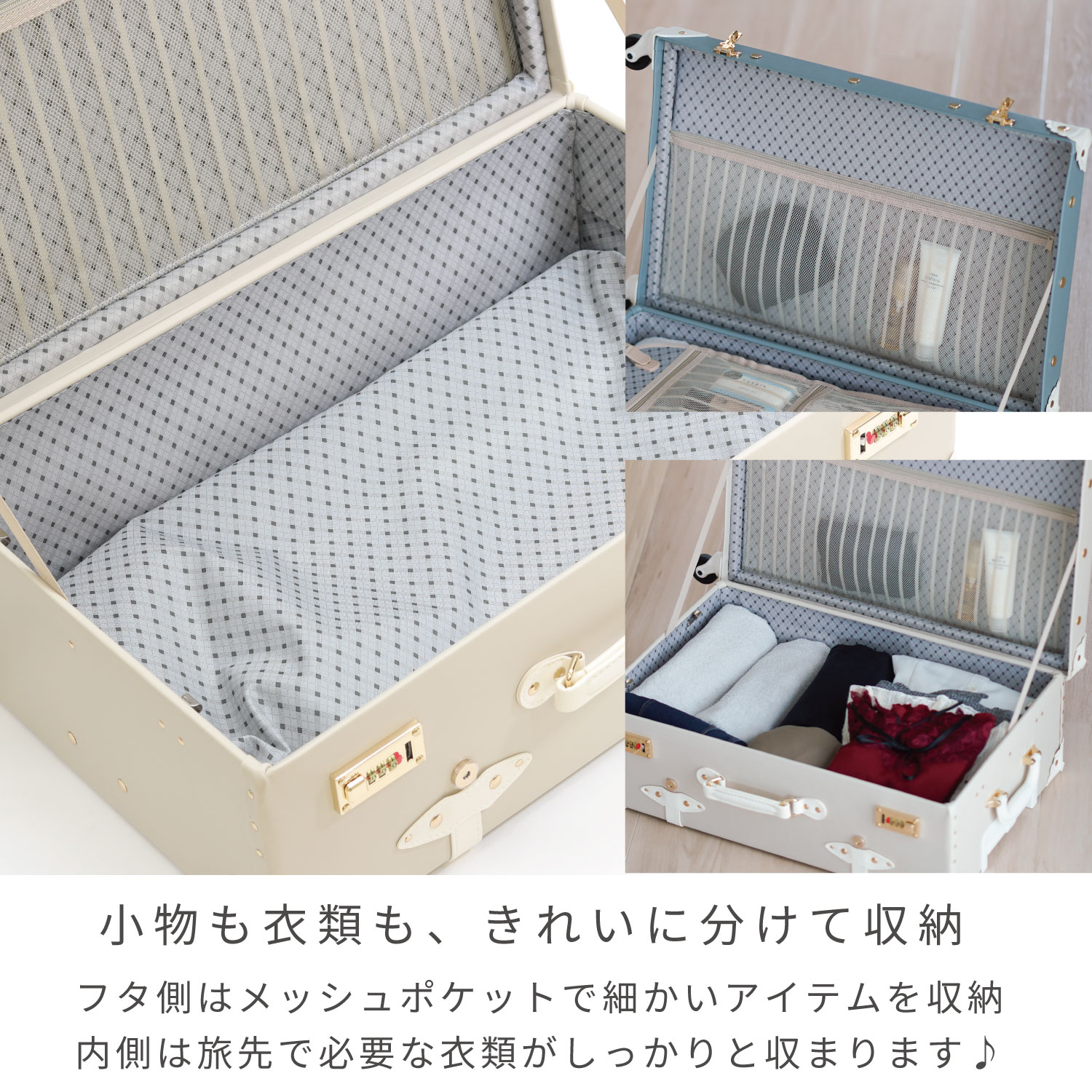 可愛い洋服やコーディネートに自然に馴染む、 推し活・イベント遠征向けスーツケース です。