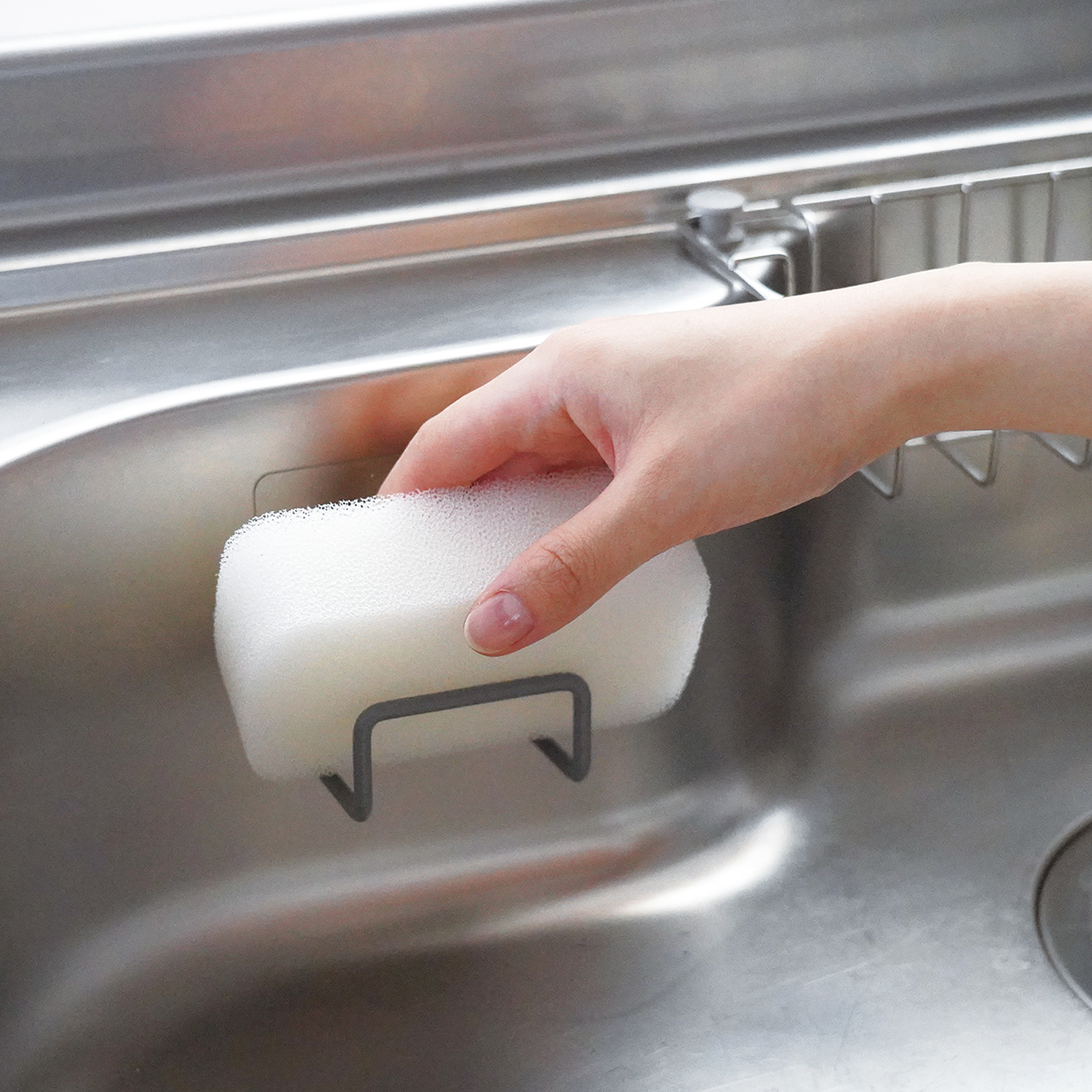 シンクにしっかり貼り付くスポンジホルダー。