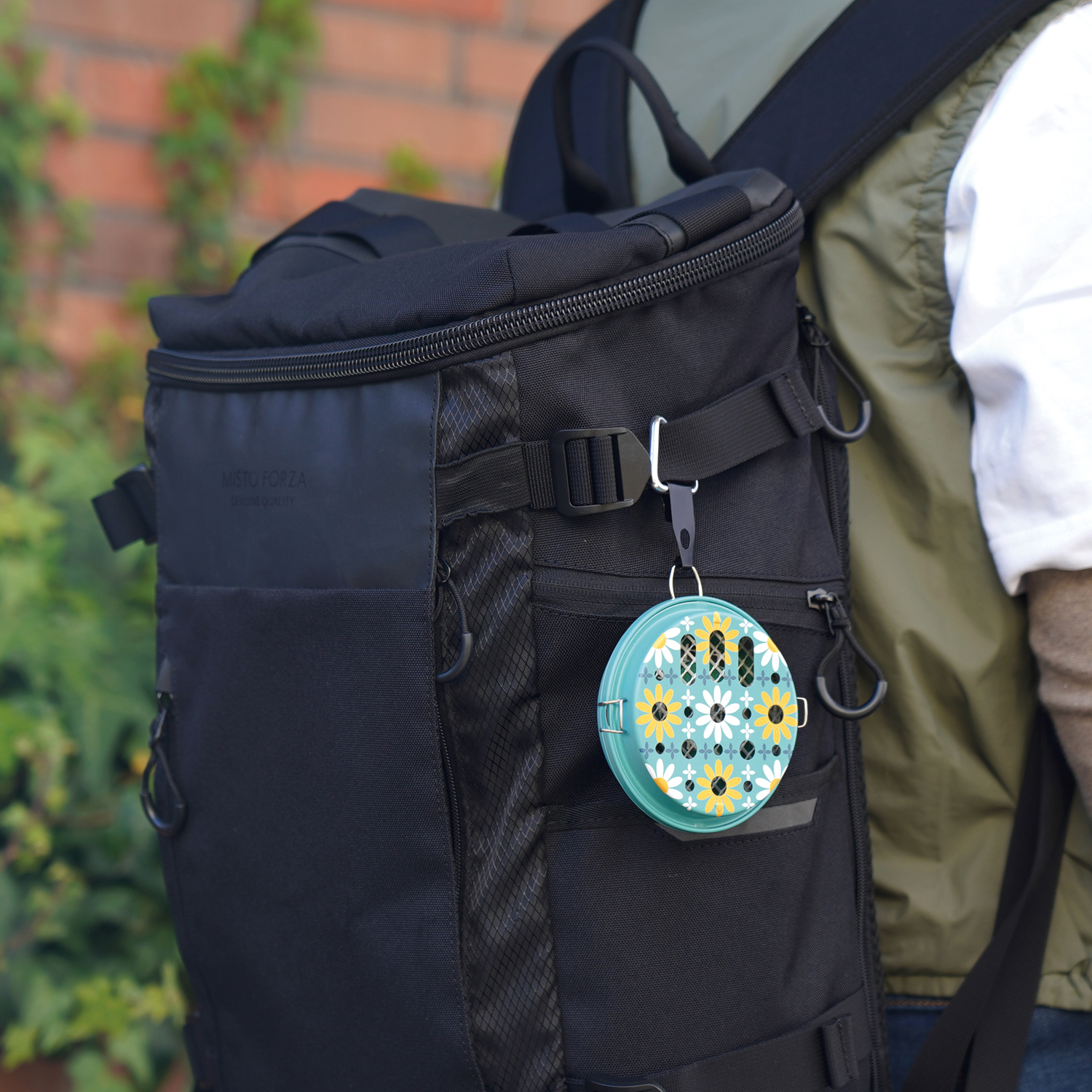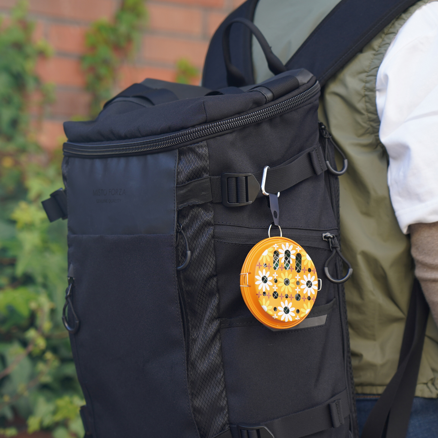 カラビナ付きで取り付け場所を自由に選べます。