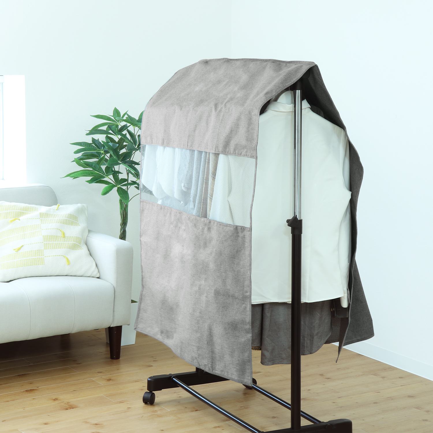 シーズンオフの大切な洋服を埃から守る横幅90cmのパイプハンガーカバー。