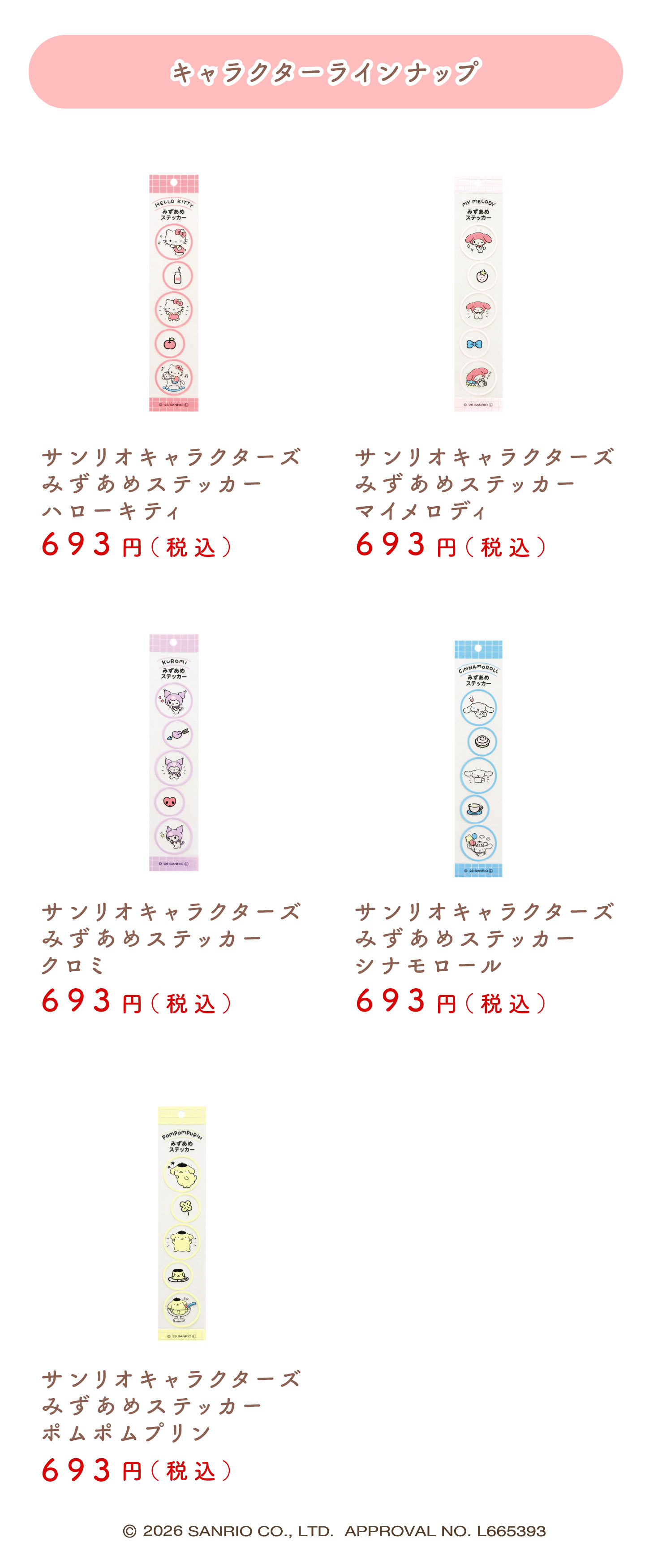 【新発売】サンリオキャラクターズ みずあめステッカー